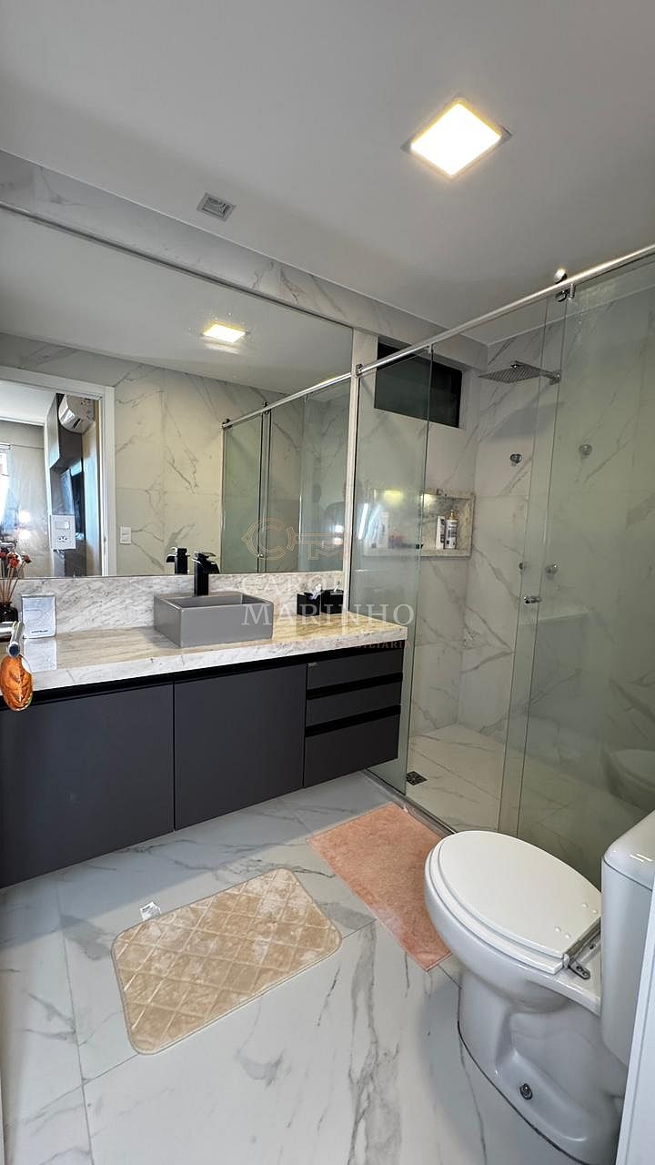 Durante a construção, o apartamento recebeu upgrades importantes nos acabamentos, incluindo revestimentos internos, piso e bancadas, elevando ainda mais o nível do imóvel.