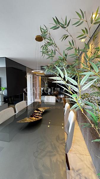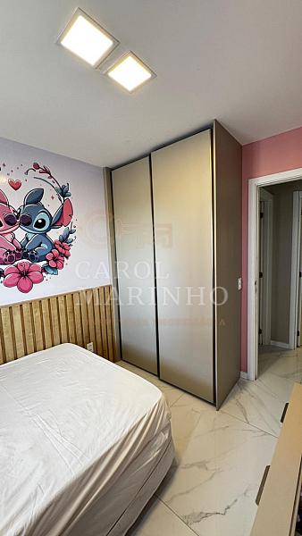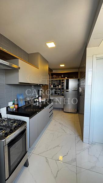 O imóvel conta com três quartos, sendo uma suíte, além de banheiro social, cozinha planejada, área de serviço com dependência completa e duas vagas de garagem amplas. Todos os ambientes possuem móveis planejados Finger, reforçando o padrão de qualidade e sofisticação.