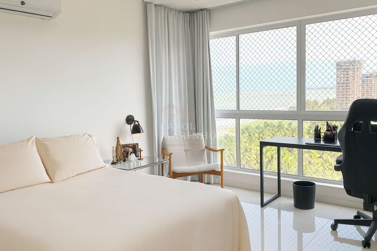 Este apartamento oferece 196 m² de área privativa, com 4 suítes amplas e bem distribuídas, além de 3 vagas de garagem. Um imóvel projetado para quem busca conforto, sofisticação e uma estrutura completa de lazer à beira-mar.