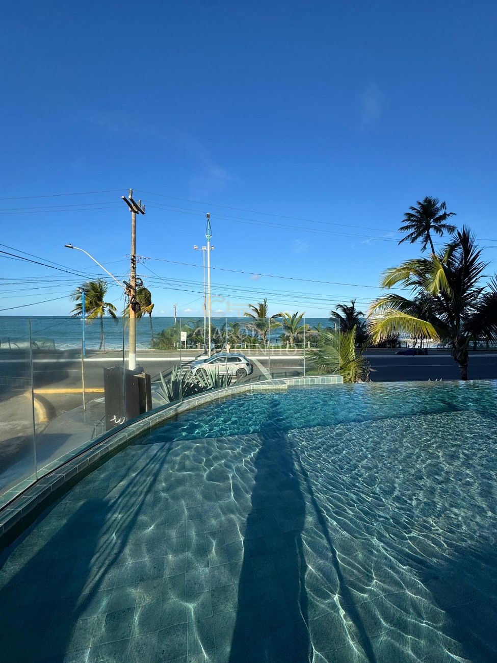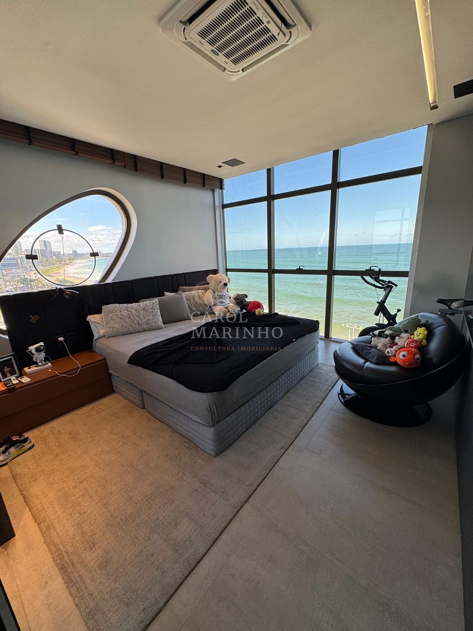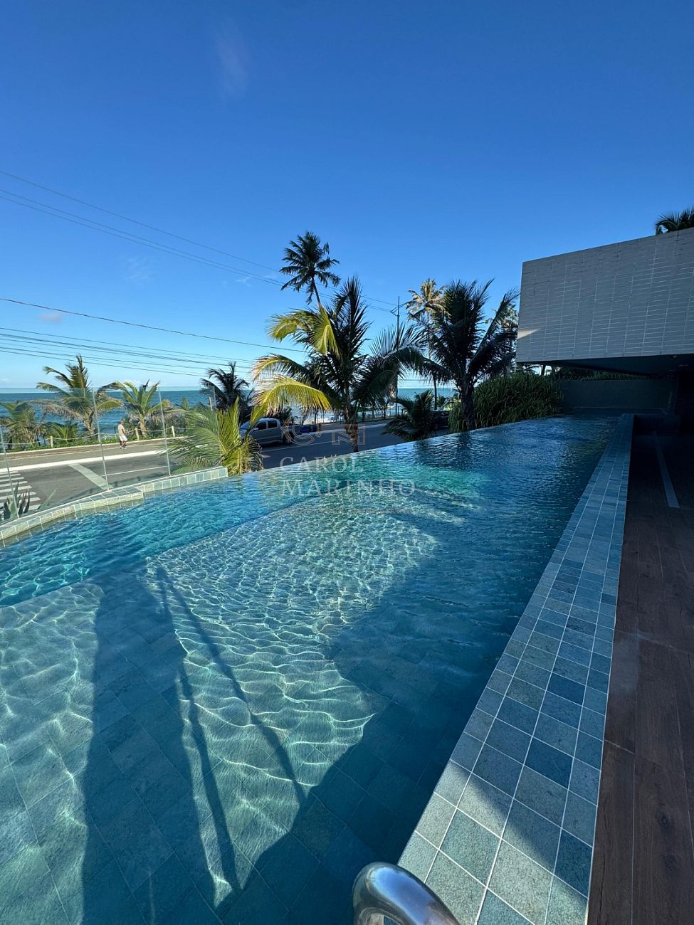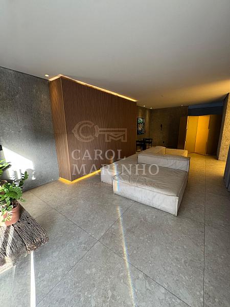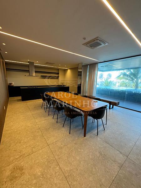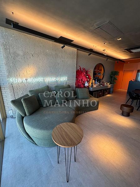 O condomínio oferece lazer completo: piscina com borda infinita e vista mar, academia equipada, sauna e sala para eventos.